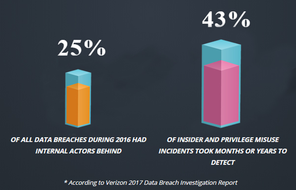Additionally, most employees excess sensitive data each day. Is it their job, right? And this is one of the major reason that thwarts finding and investing security breach cases. The utmost covert and ruinous on modern cybersecurity commence from an inside staff member. The same stats is supported by Verizon 2017 Data Breach Investigation Report